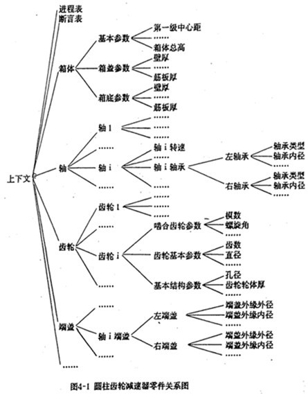 2.上下文的組成:圓柱齒輪減速器設(shè)計(jì)專家系統(tǒng)的上下文由三部分組成,它們分別是斷言表(ASSAERTIONS)、設(shè)計(jì)參數(shù)表(PARA METERAS)和進(jìn)程表(HlSTORY)。