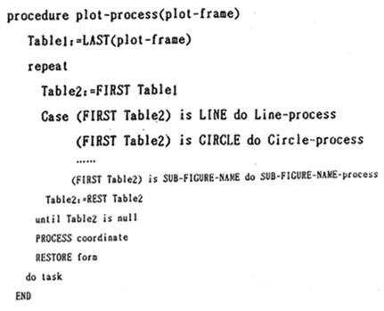 計算機各種語言以及各種繪圖軟件包各具風(fēng)格,繪圖指令各種各樣,但萬變不離其宗。因而就有可能形成一種通用的機制。作者在這里研制了一種較通用的繪圖指令生成器,其原理是通過分析各種繪圖軟件包的各種繪圖指令,在盡可能廣泛的情況下,使繪圖指令生成器的內(nèi)部,包含各種繪圖指令。同時,繪圖指令生成器也可以通過編輯或輸入的方法進(jìn)一步擴(kuò)充繪圖指令?梢酝ㄟ^二種方式改變輸出繪圖文件的格式:一是通過編輯修改輸出語句格式;二是通過教導(dǎo)式的學(xué)習(xí)方法改變繪圖文件的物出格式,如下過程: