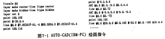 現(xiàn)在,各種計算機語言中,如PASCAL, FORTRAN, BASIC等均帶有圖語句。有諸如直線,圓弧,圓等基本指令(人工智能語言GCLISP versionl.0版因為沒有三角等計算函數(shù)的功能,所以沒有圓弧、圓等指令)。相應(yīng)的,各種計算機輔助繪圖軟件包,如IMB-PC上常用的AUTO-CAD, APOLLO工作站上使用的GPR均含有繪圖的基本單元,如繪制直線、點、中心線、折線、圓、圓弧等墓本圖形命令,進(jìn)一步的如APOLLO的S7K繪圖軟件包的三維實體造型等功能,其基本圖素如圓柱體、錐體、球體、立方體等;并都具有圖形平移、旋轉(zhuǎn)、縮小、放大等功能。但是,各繪圖軟件包一般都自成體系,比較難以通用。作者通過對這些軟件的分析,用LlSP編寫了一個比較通用的二維繪圖軟件包,在使用時,只要按所使用的軟件的相應(yīng)格式填寫,就可輸出相應(yīng)的繪圖命令。分別介紹如下: