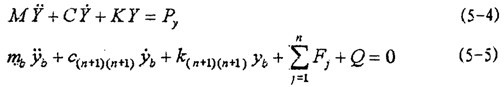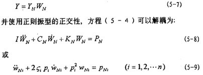 經(jīng)正則坐標(biāo)變換,雖然得到互不耦合的線性微分方程組(5-9),但是(5-9)式仍然不能像單自由度振動(dòng)系統(tǒng)那樣求解,因?yàn)椋?-9)式中的激勵(lì)力包含未知的振動(dòng)位移yb和振動(dòng)速度 。如果yb已知,就可以從(5-9)式中解得WNi,進(jìn)而可以由(5-7)式得到各yi。因此需要求得yb