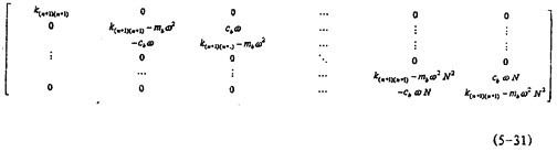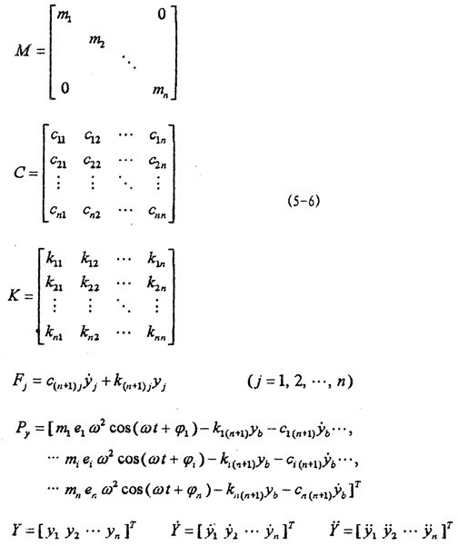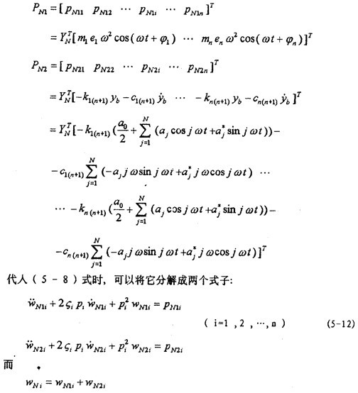 由式(5-6)、(5-8)和(5-9)可知,激勵(lì)力由二類(lèi)力構(gòu)成,一類(lèi)是質(zhì)量偏心力mieiω2cos(ωt+ ,另一類(lèi)是恢復(fù)力ki(n+1)yb-ci(n+1) ,為求解(5-8)式方便,將(5-10)代入(5-8)式,并將正則激勵(lì)力分解成: