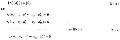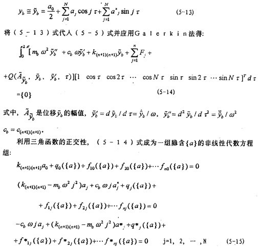 +1個(gè)未知量[a0  a1  T。由(5-15)式可知,它不同于一般的非線性方程組,在一般的非線性方程組中,未知量是顯含的,而(5-15)式的未知量{a}是隱含的,而且{q}是{a}的非線件函數(shù)。不能通過(guò)將yb的傅立葉展開(kāi)式代人恢復(fù)力O的表達(dá)式中來(lái)直接求得,這是因?yàn)镼表達(dá)式中的振幅 不能表示成{a}的顯函數(shù)的緣故。因此要想由(5-1)式解得{a},還需要解決兩個(gè)問(wèn)題:一是如何求 ,二是用什么來(lái)解隱含{a}的方程組(5-15)。下面就決這些問(wèn)題。