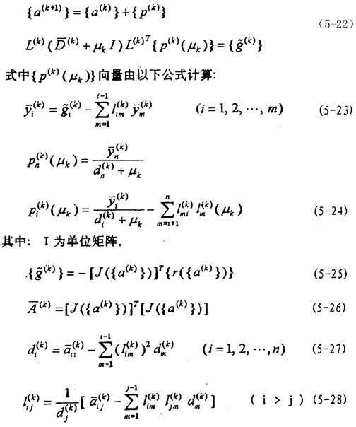 當(dāng)LM法用于(5-18)問(wèn)題時(shí),迭代公式為: