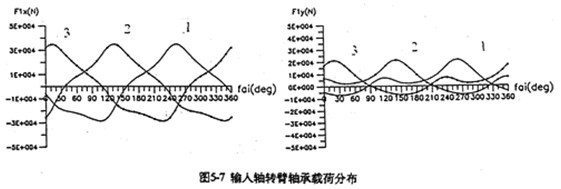箱體軸承載荷的分布曲線如圖5-10、5-11、5-12的所示。