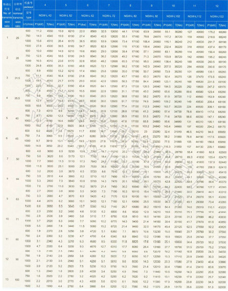 P1—公稱輸入功率,當減速器輸入功率不是1500.1000.750r/min時,可按最近表列轉(zhuǎn)速的一檔,折算P2