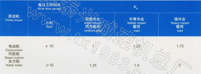 (1)、查表,斗提機屬中等沖中擊;查表Ks=1.5,查表=1.4