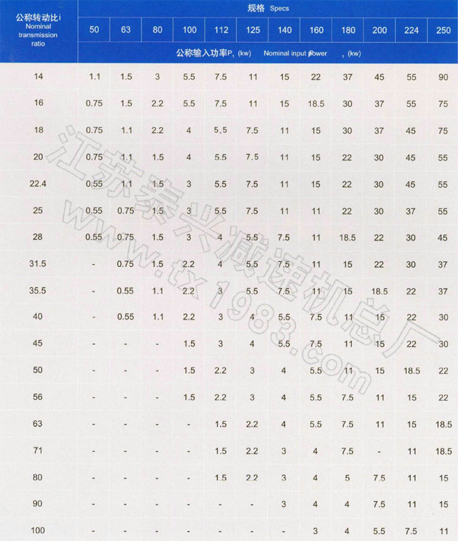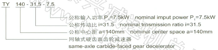 減速器的標(biāo)記代號(hào)中包括減速器型號(hào)、公稱中心距、公稱傳動(dòng)比和公稱輸入功率。