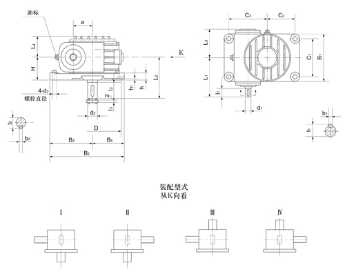 減速器的蝸桿軸可正、反兩個方向運轉(zhuǎn),輸入轉(zhuǎn)速不超過1500r/min,工作環(huán)境溫度為-40~+40℃,當工作環(huán)境溫度低于0℃時,起動前潤滑油必須加熱到0℃以上;當工作環(huán)境溫度高于40℃時,必須采取冷卻措施。
