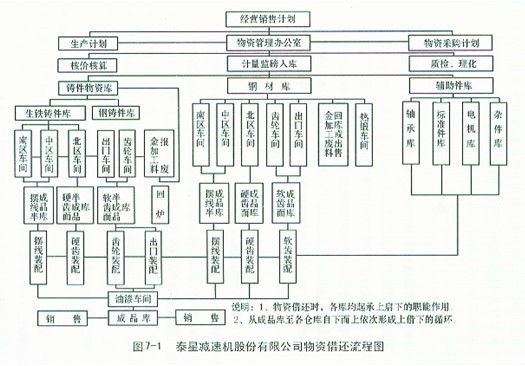 Ⅱ 物資管理實(shí)現(xiàn)科學(xué)轉(zhuǎn)換 20世紀(jì)80年代中后期,剛剛走上經(jīng)營(yíng)之路的鄉(xiāng)鎮(zhèn)企業(yè)正處于“計(jì)劃經(jīng)濟(jì)為主、市場(chǎng)調(diào)節(jié)為輔”的宏觀經(jīng)濟(jì)背景之下,絕大多數(shù)企業(yè)都是沿用以往的國(guó)有企業(yè)的計(jì)劃管理模式進(jìn)行生產(chǎn)經(jīng)營(yíng),其生產(chǎn)所需的原輔材料完全靠國(guó)有大中型企業(yè)的施舍——變態(tài)的小計(jì)劃來(lái)維持。鄉(xiāng)鎮(zhèn)企業(yè)的原輔材料經(jīng)常面臨數(shù)量短缺、價(jià)格上漲等威脅,直接影響到企業(yè)成本變化和目標(biāo)利潤(rùn)的實(shí)現(xiàn)。同時(shí),由于鄉(xiāng)鎮(zhèn)企業(yè)過(guò)分看重對(duì)外籌措資金,忽視了內(nèi)部已占用了的資金——物資的運(yùn)轉(zhuǎn),造成原本就十分緊張的資金不能用到、用好、用足在擴(kuò)大再生產(chǎn)上,制約上企業(yè)的發(fā)展。 “泰星”公司也和其他鄉(xiāng)鎮(zhèn)企業(yè)一樣,在夾縫中成長(zhǎng)。1986年冬季的一件意外事件更讓“泰星”公司高層管理者深感加強(qiáng)物資管理的迫切性。公司所在地周?chē)霓r(nóng)民在工廠附近河里捕魚(yú)時(shí),竟然打撈出了許多減速機(jī)的零部件。經(jīng)過(guò)調(diào)查:原來(lái)是工人生產(chǎn)了廢次品,因怕被發(fā)現(xiàn)受罰而偷偷將廢次品都扔到了河里!疤┬恰惫靖邔庸芾碚呱羁痰卣J(rèn)識(shí)到:“外掙一塊板,內(nèi)丟一扇門(mén)”。銷(xiāo)售人員辛辛苦苦在外跑銷(xiāo)售,好不容易承攬到訂單,而扣除生產(chǎn)過(guò)程的成本費(fèi)用后,企業(yè)只掙取了銷(xiāo)售價(jià)的一小部份,但企業(yè)內(nèi)部物資的流失,將是百分之百的損失。所以,從某種意義上講,企業(yè)內(nèi)抓物資的運(yùn)轉(zhuǎn)、堵塞管理方面存在的漏洞比市場(chǎng)營(yíng)銷(xiāo)還重要。因此,公司從企業(yè)實(shí)際出發(fā)率先探索出以倉(cāng)庫(kù)為主動(dòng)脈的“物資借還制”的物資管理的新辦法。