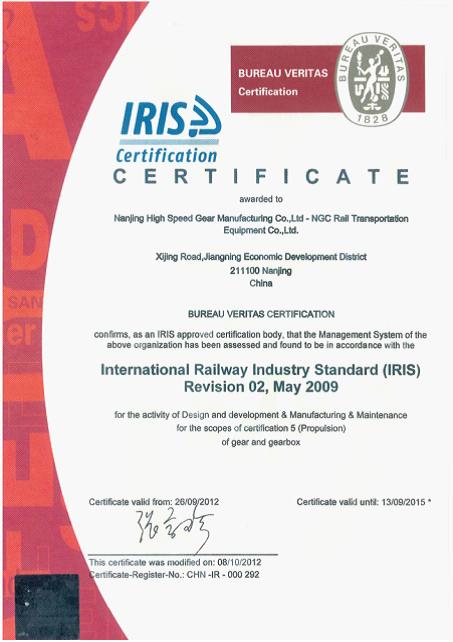 近日,南京高精傳動(dòng)設(shè)備制造集團(tuán)有限公司(簡(jiǎn)稱:南高齒)子公司南京傳動(dòng)軌道交通設(shè)備有限公司獲得IRIS(國(guó)際鐵路行業(yè)標(biāo)準(zhǔn))認(rèn)證證書,標(biāo)志著南京傳動(dòng)軌道交通設(shè)備有限公司質(zhì)量管理水平與國(guó)際水平進(jìn)一步接軌,為公司軌道交通產(chǎn)品進(jìn)一步拓展國(guó)際鐵路高端市場(chǎng)奠定了堅(jiān)實(shí)的基礎(chǔ)。同時(shí),成功獲取IRIS認(rèn)證也是南高齒質(zhì)量戰(zhàn)略步驟的重要一環(huán),它進(jìn)一步保證了南高齒為國(guó)際軌道交通領(lǐng)域提供高質(zhì)量和性能突出的傳動(dòng)產(chǎn)品。