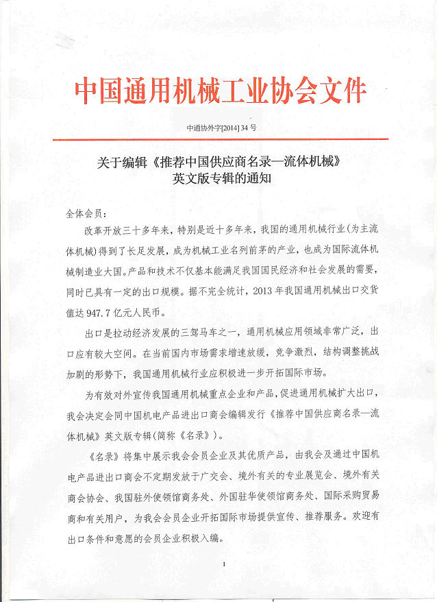 關(guān)于編輯《推薦中國(guó)供應(yīng)商名錄—流體機(jī)械》英文版專(zhuān)輯的通知