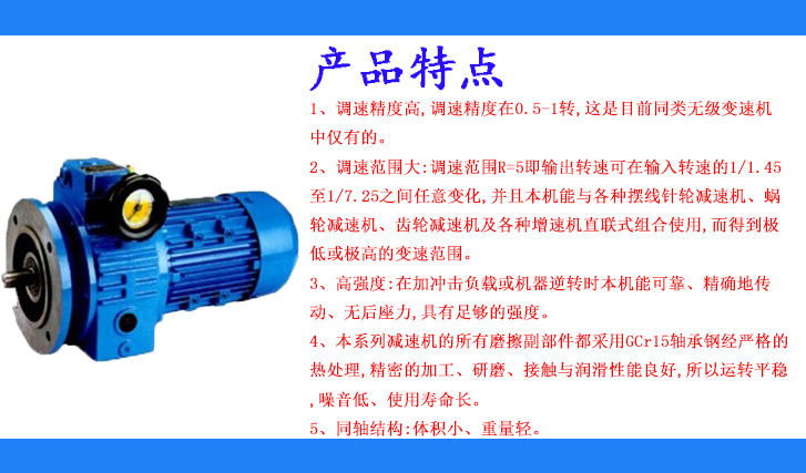 1、調(diào)速精度大,調(diào)速精度在0.5-1轉(zhuǎn),這是目前同類無(wú)級(jí)變速機(jī)中僅有的。