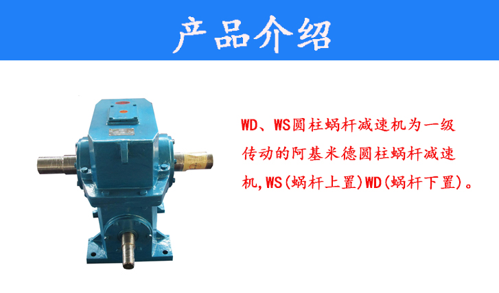 WD、WS圓柱蝸桿減速機(jī)為一級傳動的阿基米德圓柱蝸桿減速機(jī),WS(蝸桿上置)WD(蝸桿下置)。