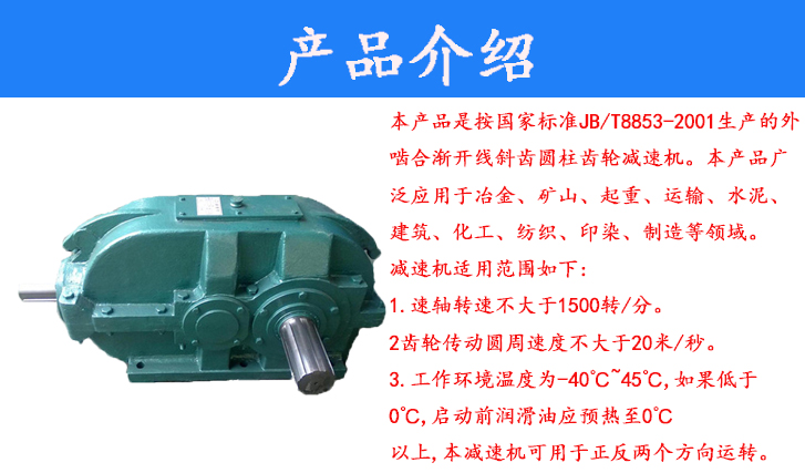 DBY、DCY、DFY系列減速器分別為二級(jí)傳動(dòng)、三級(jí)傳動(dòng)和四級(jí)傳動(dòng)的輸入、輸出軸位于垂直狀態(tài)的外嚙合齒輪傳動(dòng)機(jī)構(gòu),符合JB/T8853-1999標(biāo)準(zhǔn)?扇〈鶶S型垂直軸減速器和ZQ、ZL、等舊型號(hào)減速器,亦可替代同類型國(guó)外進(jìn)口減速器。