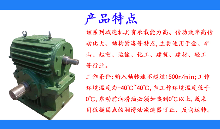 該系列減速機(jī)具有承載能力高、傳動(dòng)效率高傳動(dòng)比大、結(jié)構(gòu)緊湊等特點(diǎn),主要適用于金、礦山、起重、運(yùn)輸、化工、建筑、建材、輕工等行業(yè)。