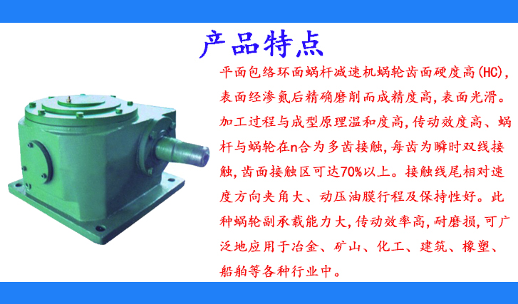 平面包絡(luò)環(huán)面蝸桿減速機(jī)蝸輪齒面硬度高(HC),表面經(jīng)滲氮后精確磨削而成精度高,表面光滑。加工過程與成型原理溫和度高,傳動(dòng)效度高、蝸桿與蝸輪在n合為多齒接觸,每齒為瞬時(shí)雙線接觸,齒面接觸區(qū)可達(dá)70%以上。接觸線尾相對(duì)速度方向夾角大、動(dòng)壓油膜行程及保持性好。此種蝸輪副承載能力大,傳動(dòng)效率高,耐磨損,可廣泛地應(yīng)用于冶金、礦山、化工、建筑、橡塑、船舶等各種行業(yè)中。