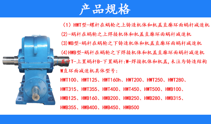 (1)HWT型-螺桿在蝸輪之上鑄造機(jī)體和機(jī)蓋直廓環(huán)面蝸桿減速機(jī)