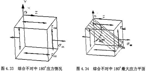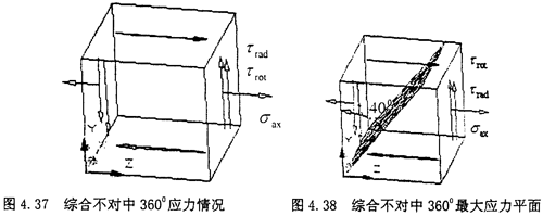 這時取σax=10.6MPa,τrad=10MPa,σang=10.6MPa,代入式(4-49)中,可以得出最大主應(yīng)力為σmax=