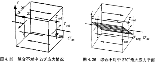 此時的應(yīng)力情況屬于三向應(yīng)力狀態(tài),所以其分析過程和徑向不對中90°以及270°情況相似,只是這里還有了附加的軸向拉應(yīng)力和附加的角向應(yīng)力,將各個應(yīng)力值