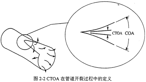裂紋尖端張開角CTOA(Crack Tip Opening Angle)最早被用來分析核電站管路的穩(wěn)態(tài)裂紋擴(kuò)展,后來用于輸氣管線和航空工業(yè)。如圖2-2,與裂紋張開角COA不同,CTOA對應(yīng)于一定的斷裂擴(kuò)展?fàn)顟B(tài),不隨測量點的位置而改變。CTOA在數(shù)學(xué)上可以按下式定義: