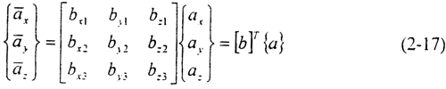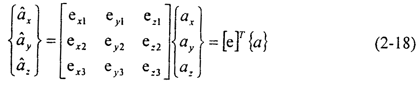 對于總體坐標(biāo)系中的任意矢量a,其在節(jié)點坐標(biāo)系中的分量可以表達(dá)為: