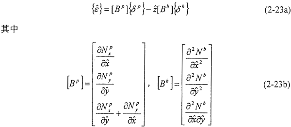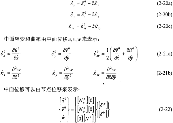 基于Kirchhoff假設(shè)的板殼單元,殼體中某一點的應(yīng)變,可以由中面應(yīng)變,,和曲率,,來表示: