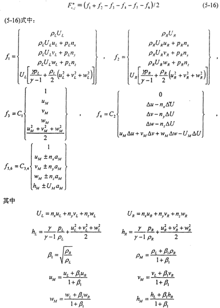 便可方便的得出一階精度格式。顯然,一階精度格式對(duì)于粘流的計(jì)算來說是沒有應(yīng)用價(jià)值的。為了構(gòu)造高精度格式,必須尋求確定LR的高精度方法。對(duì)于二階精度格式,LR的表達(dá)式可由下式確定: