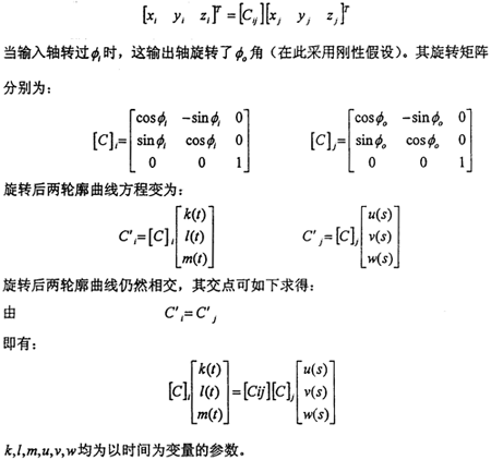 設(shè)兩曲線的交點M(嚙合點)與兩軸的交點O的連線OM與輸入軸(Zi軸的負(fù)半軸)的夾角和OM與輸出軸和夾角分別為:(在此處|OM|=