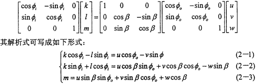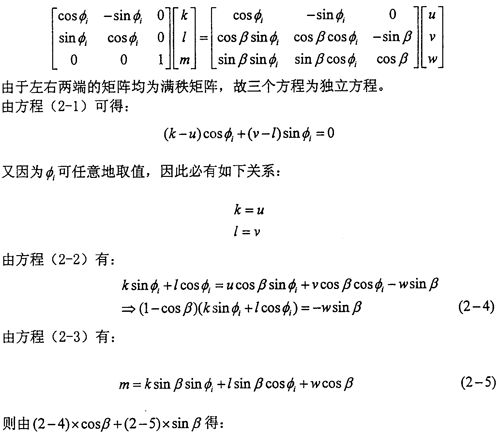 進(jìn)行坐標(biāo)變換有:(即由坐標(biāo)系OXjYjZj變換到坐標(biāo)系OXiYiZi其中(Xi,Yi,Zi),(Xj,Yj,Zj)分別表示某點在兩坐標(biāo)系中的坐標(biāo)。)