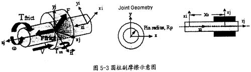 在雙聯(lián)三叉桿式萬向聯(lián)軸器的模型中,相互運動的構(gòu)件較多,各個構(gòu)件之間的活動接觸面都會產(chǎn)生摩擦力的作用,不同的運動副形式,摩擦產(chǎn)生的來源也不一樣,在施加摩擦?xí)r要根據(jù)不同的摩擦來源考慮各因素的影響。在本章的分析中,各個運動副間都被加上了摩擦力。由于涉及到了如下四種運動副,現(xiàn)對它們摩擦力施加的考慮因素作如下的陳述: