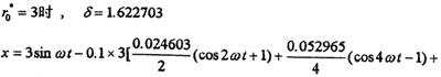 為了說明柴油機(jī)閃—諧波平衡法的正確性和精度,我們分別用一個簡單例子和大撓度彈性聯(lián)軸器系統(tǒng)(4-2)進(jìn)行計算,同時與相應(yīng)的數(shù)值仿真計算作比較。