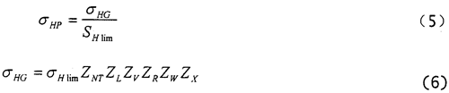 大、小輪在節(jié)點(diǎn)和單對齒嚙合區(qū)內(nèi)界點(diǎn)處的計(jì)算接觸應(yīng)力中的較大值σH,均應(yīng)不大于其相應(yīng)的許用接觸應(yīng)力σHP,即: