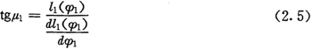 由微分幾何知,曲線(xiàn)Hl的向徑與切線(xiàn)正方向的夾角μ1可由下式計(jì)算: