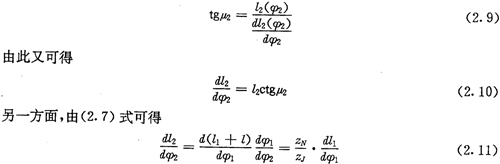 同樣,由微分幾何,曲線(xiàn)H2的向徑與切線(xiàn)正方向的夾角μ2可由下式計(jì)算:
