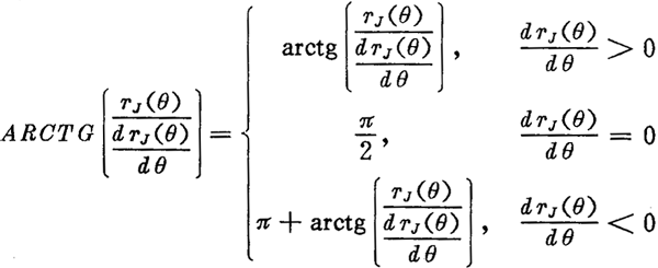 上式中的μ為曲線(xiàn)HJ在M1點(diǎn)的向徑與切線(xiàn)正方向的夾角。前面已說(shuō)過(guò),曲線(xiàn)向徑與切線(xiàn)正向的夾角μ的取值范圍是[O,π]。在用計(jì)算機(jī)解算時(shí),反正切函數(shù)arctg(x)的值域是