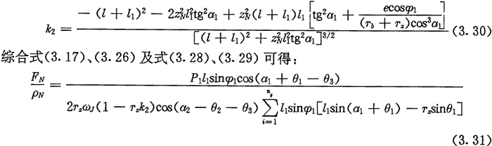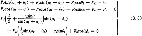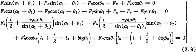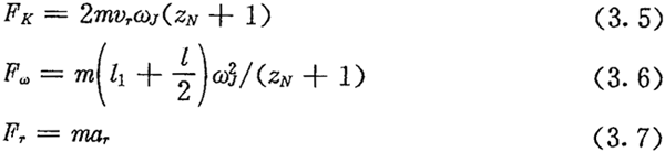 由于考慮了慣性力,所以力Fc不通過交點Q,lc也是一個未知數(shù)。若根據輸入功率確定出FJ,則方程組(3.8)只剩下FN、FC及l(fā)c三個未知數(shù)了。