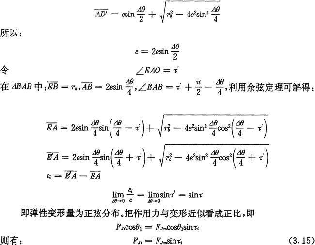 上式中:FJm為對應最大變形處的作用力;FJi為激波器對第i個推桿的作用力;τi為第i個推桿內滾子中心與激波器短軸所夾的圓心角。如圖3.2所示。