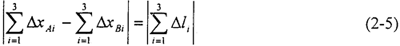 由于△x/△l≈4-7,所以三環(huán)傳動(dòng)中,輸入軸的彎曲變形是主要變形,環(huán)板拉壓變形也同樣不可忽略。參考如圖2-3所示的對(duì)稱A型環(huán)板的受力情況,環(huán)板和輸入軸在y方向的變形是二次微小量,可以略去不計(jì)?紤]環(huán)板和輸入軸在x方向的變形,任一環(huán)板可以簡(jiǎn)化為三段不同直徑的桿,在x方向上分別受到FAix、FBix、嚙合力Fni水平分力和慣性力Pi水平分力的拉伸或壓縮作用;對(duì)于輸入軸來說,在輸入軸上任一環(huán)板處Ai(Bi),輸入軸在x方向的撓度△x為偏心軸頸上環(huán)板軸承的作用力FA1x,F(xiàn)A2x,F(xiàn)A3x(FB1x,F(xiàn)B2x,F(xiàn)B3x)在Ai(Bi)點(diǎn)作用的撓度△xAi(Bi)的疊加。則三環(huán)減速機(jī)變形協(xié)調(diào)條件取為:在外力作用下,任一環(huán)板處兩個(gè)輸入軸在x方向的撓度的差等于該環(huán)板在x方向的變形。上述變形協(xié)調(diào)條件表示為: