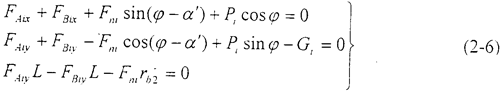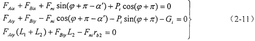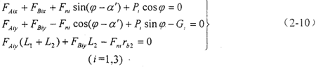 對(duì)作用于偏置環(huán)板上的平面力系,可列出靜力平衡方程: