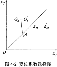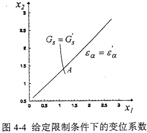 某項限制條件,可以曲線的形式表示在xl,x2坐標系內(nèi),若把每個限制條件都以曲線形式繪于x1,x2坐標系內(nèi),則它們的交點A便對應著這對齒輪的變位系數(shù),如圖4-2所示。