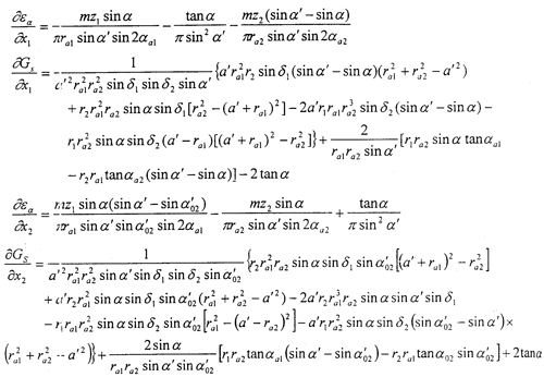 把變位系數(shù)x1,x2取作獨立變量,把嚙合角α′取作中間變量,用牛頓法求解。其迭代程序為: