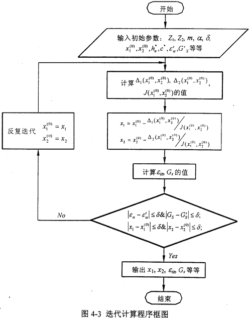 根據(jù)上述公式推導,編制了迭代計算程序,程序框圖如圖4-3所示。