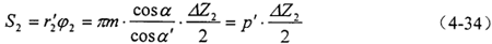 φ2角所對應(yīng)的節(jié)圓弧長為: