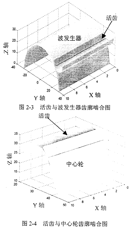 采用相同算法得到活齒與中心輪嚙合時齒廓曲面的三維圖形(圖2-4 ),同樣可見其接觸線也是一條平行于回轉軸的直線。