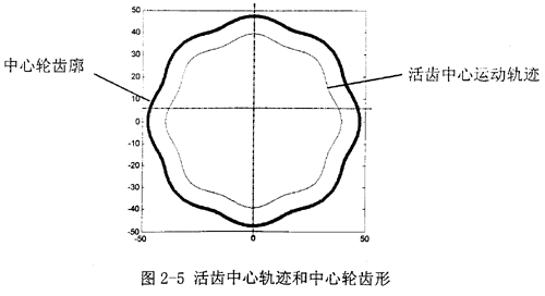 根據式(2-2),得活齒中心輪齒廓方程為: