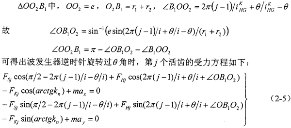 (圖2-2) ,波發(fā)生器H勻速逆時針旋轉,設活齒在波發(fā)生器上作純滾動并在中心輪齒廓限制下推動活齒架作勻速逆時針轉動。波發(fā)生器H 的幾何中心為O′,活齒G 的幾何中心為O1。在矢量ΔO O′O1中,矢量