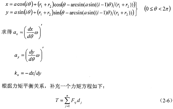 其中dj=(r1+r2)sin∠OO2B1/sin∠B1OO2。每個活齒有3個未知數,共有3ZG個未知數,方程數為2ZG+l個,需要補充ZG-1個方程,方可求解。