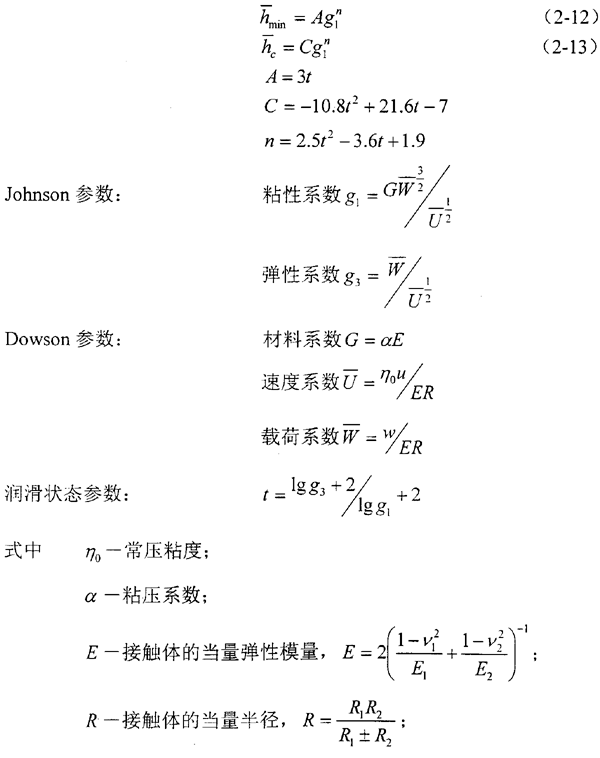 2.6.1 潤滑狀態(tài)的判斷及油膜厚度的計算