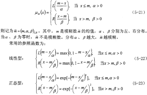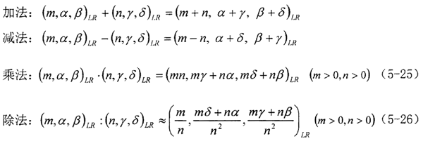 式(5-25)、(5-26)是近似的,嚴格地說,兩個L-R型模糊數(shù)相乘或相除,其結(jié)果不再是L-R型模糊數(shù)。