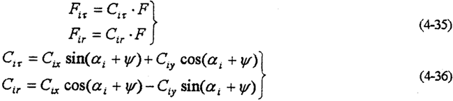 將軸承載荷加以處理后,就可以得到行星軸承與偏心套接觸點的載荷與軸承總載荷的關(guān)系。如圖4-7所示,若偏心套與軸承的接觸中心與坐標軸r的角為φ。則各節(jié)點載荷在r和τ方向的分量由式(4-29)和式(4-32)變換得